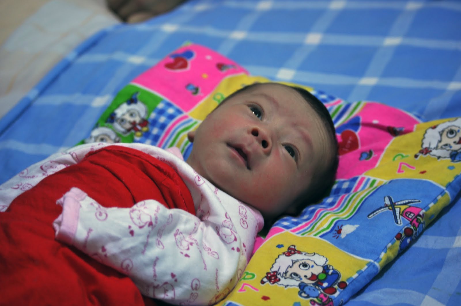 After a few hours, our guests showed up – those shiny brown 7-year old eyes peeking into my kitchen and eliciting a drawn-out “Heyyyyyyyyyyyyyy,” from me as I bent down for a hug. Within a few minutes, we were all sitting at the table and bowing our heads. The wife confessed that she had brought along some soft food from home just in case there nothing palatable for the baby, but she was delighted to see that baby Esther went right for the mashed potatoes. By the end of the meal, she had potatoes outlining her little mouth.